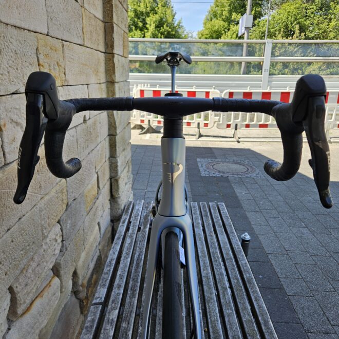 Sattelstütze: Pinarello Aero seatpost with 3D printed titanium top seatclamp and bolts